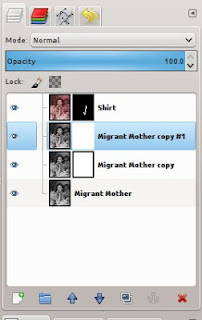 The first thing you will need to do is find a black and white photo. I decided to try using the most famous black and white photo I know of, "Migrant Mother" taken by Dorothea Lange in 1936. Open the image in The Gimp.